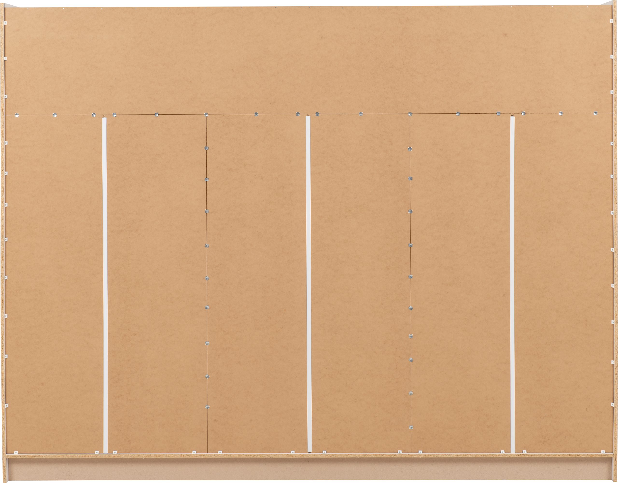 COMPOSITE BOARD FRAME, PLASTIC VENEER, MDF BACK PANEL, METAL DOOR DETAILS, METAL HANGING RAIL, PLASTIC DOOR DETAILS, PLASTIC BACK PANEL STRIP, PLASTIC FEET, MIRRORED GLASS
