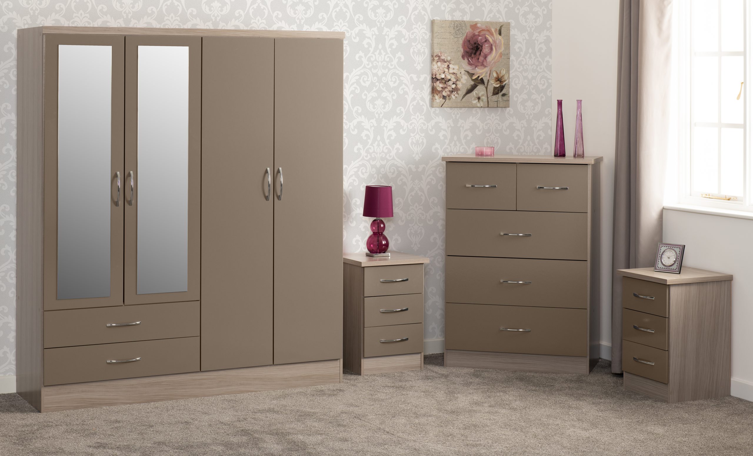 Nevada 4 Door 2 Drawer Mirrored Wardrobe Bedroom Set