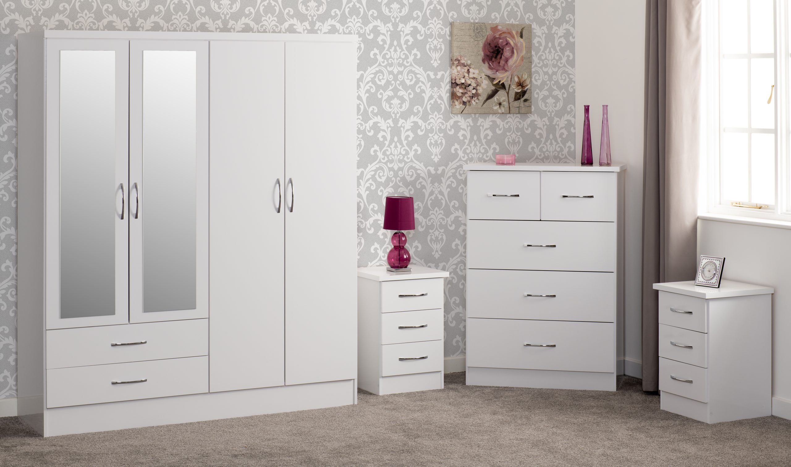 Nevada 4 Door 2 Drawer Mirrored Wardrobe Bedroom Set