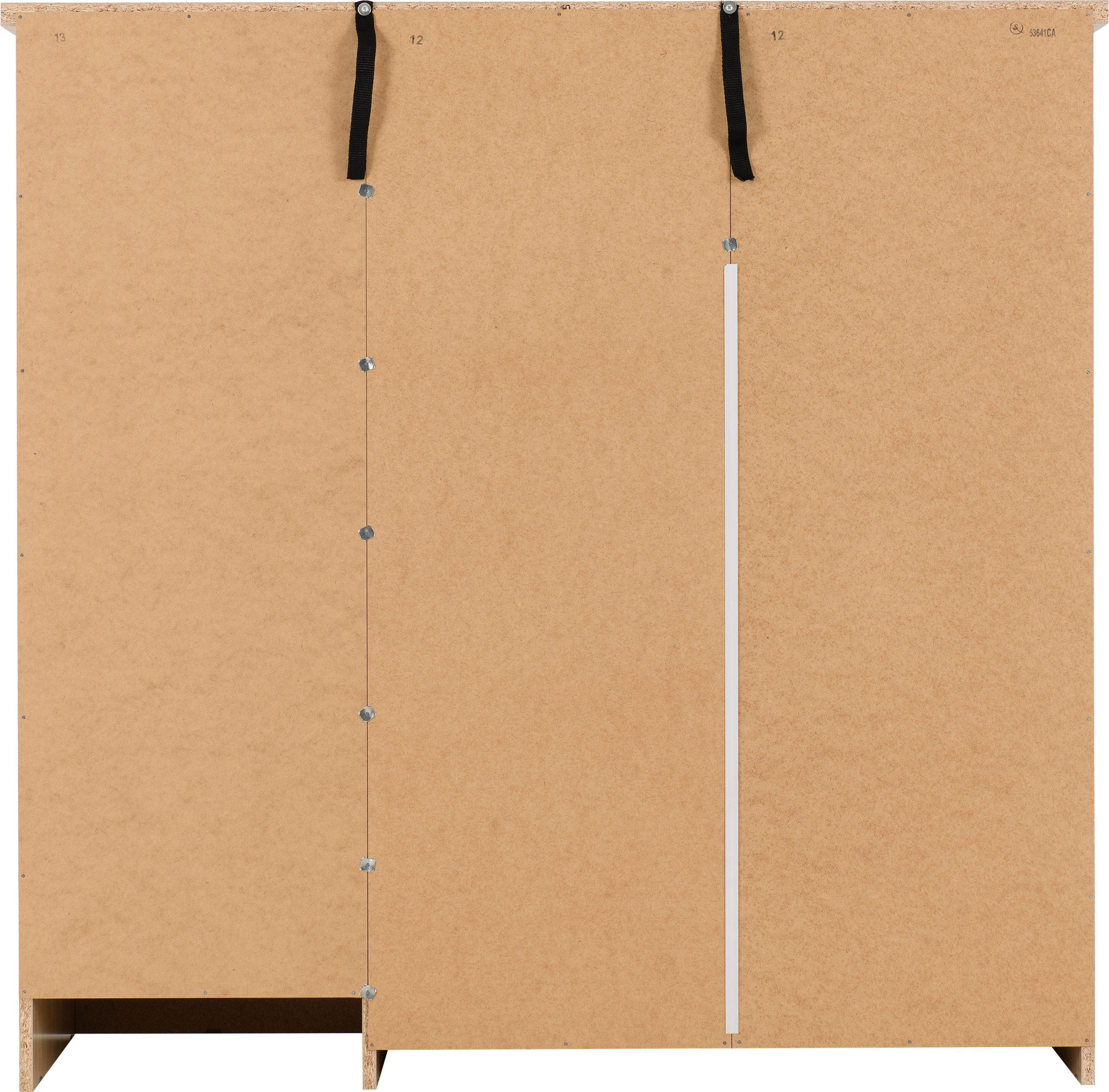 COMPOSITE BOARD, 3D PAINT EFFECT, PLASTIC VENEER, MDF BACK PANEL/DRAWER BASE, METAL HANGING RAIL, METAL HANDLES, METAL HINGES, METAL DRAWER RUNNERS, PLASTIC BACK PANEL STRIP, PLASTIC FEET